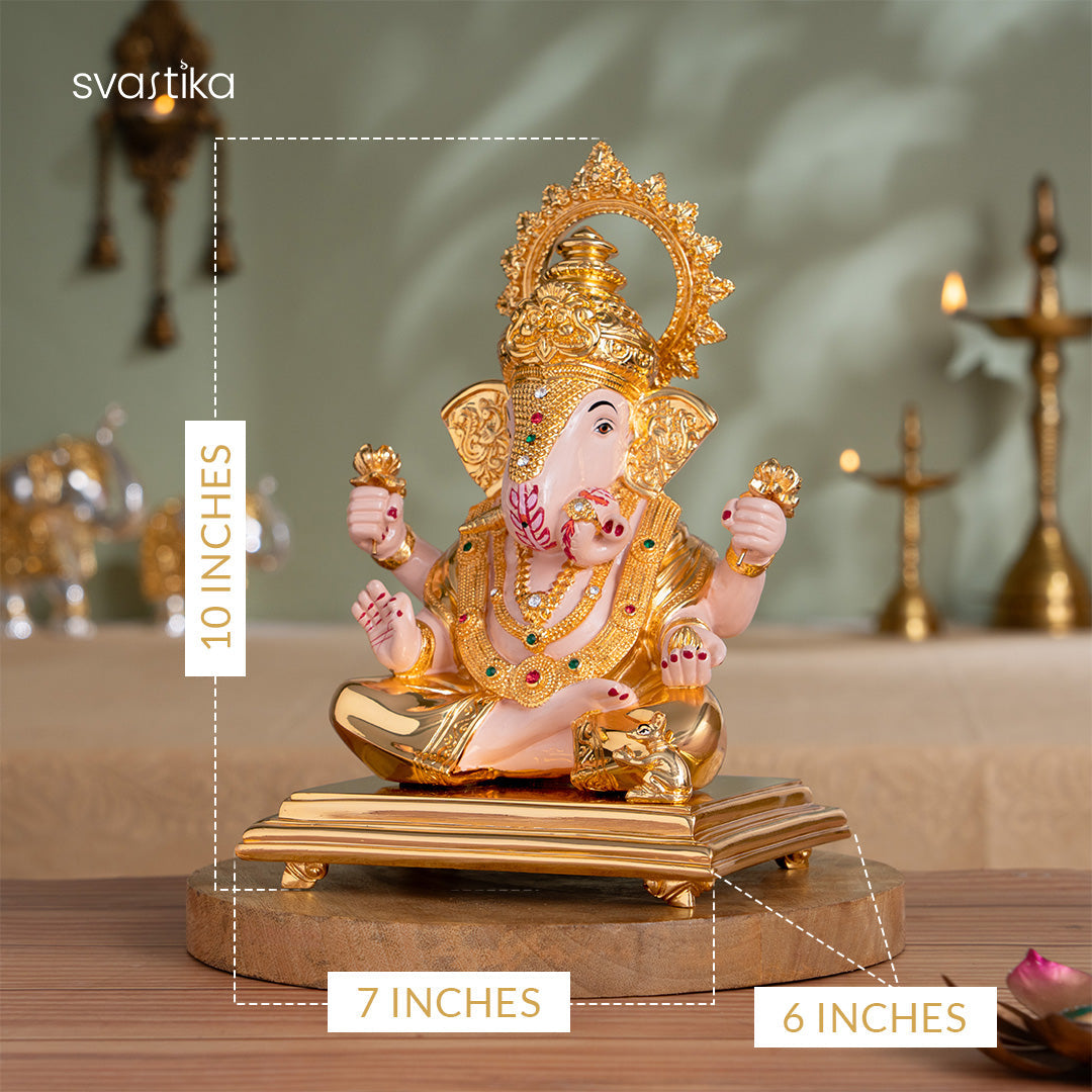 The Vinayaka idol, made from durable resin with luxurious gold plating, serves as an exquisite decorative item, making it one of the best housewarming gifts.
