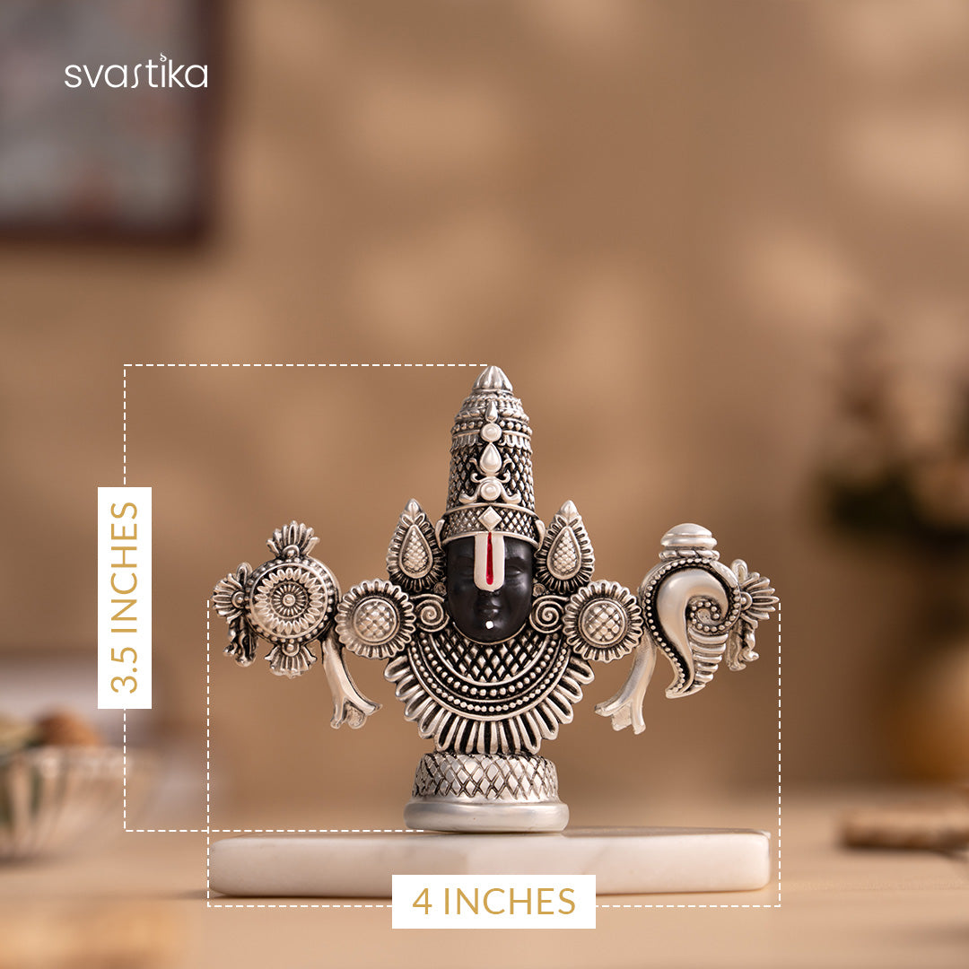 With a height of 3.5 inches and width of 4 inches, this Tirupati Balaji silver idol (small) is ideal for compact spaces, office desks, car dashboards, or gifting. Elevate your space with the divine presence of Lord Balaji and invite blessings into your life.